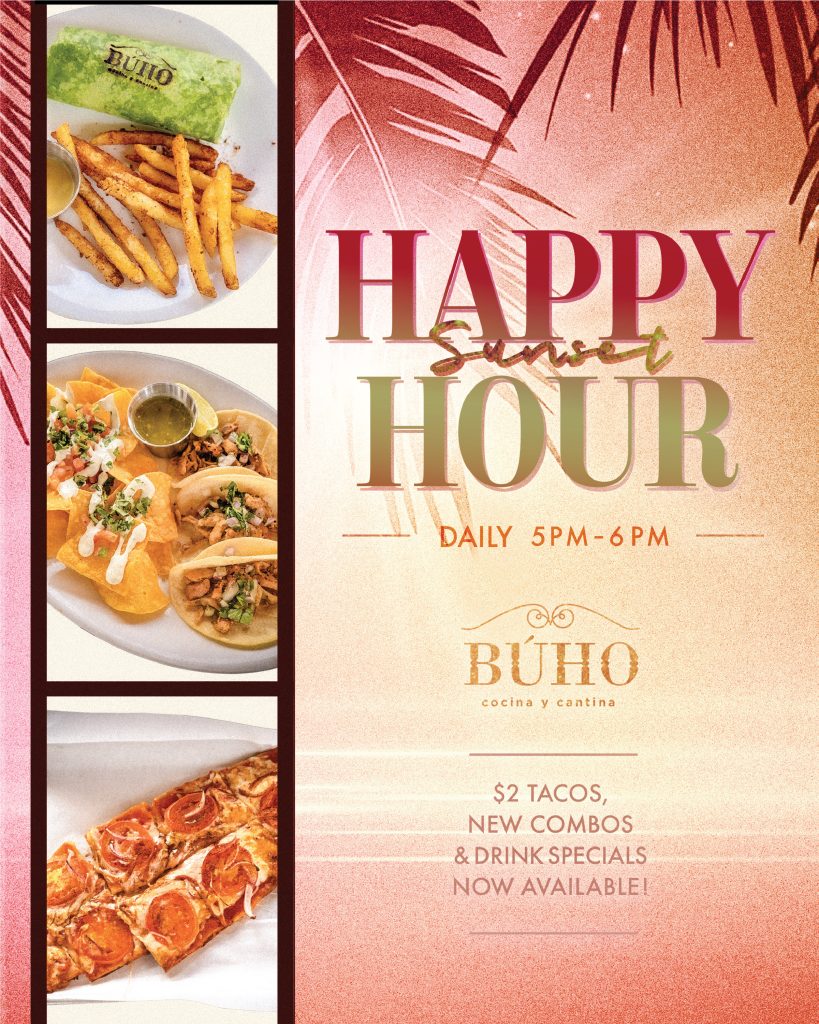 BÚHO Cocina y Cantina announces the expansion of its Happy Hour to include weekends, offering guests a daily opportunity to enjoy curated cocktails and tapas at special pricing.