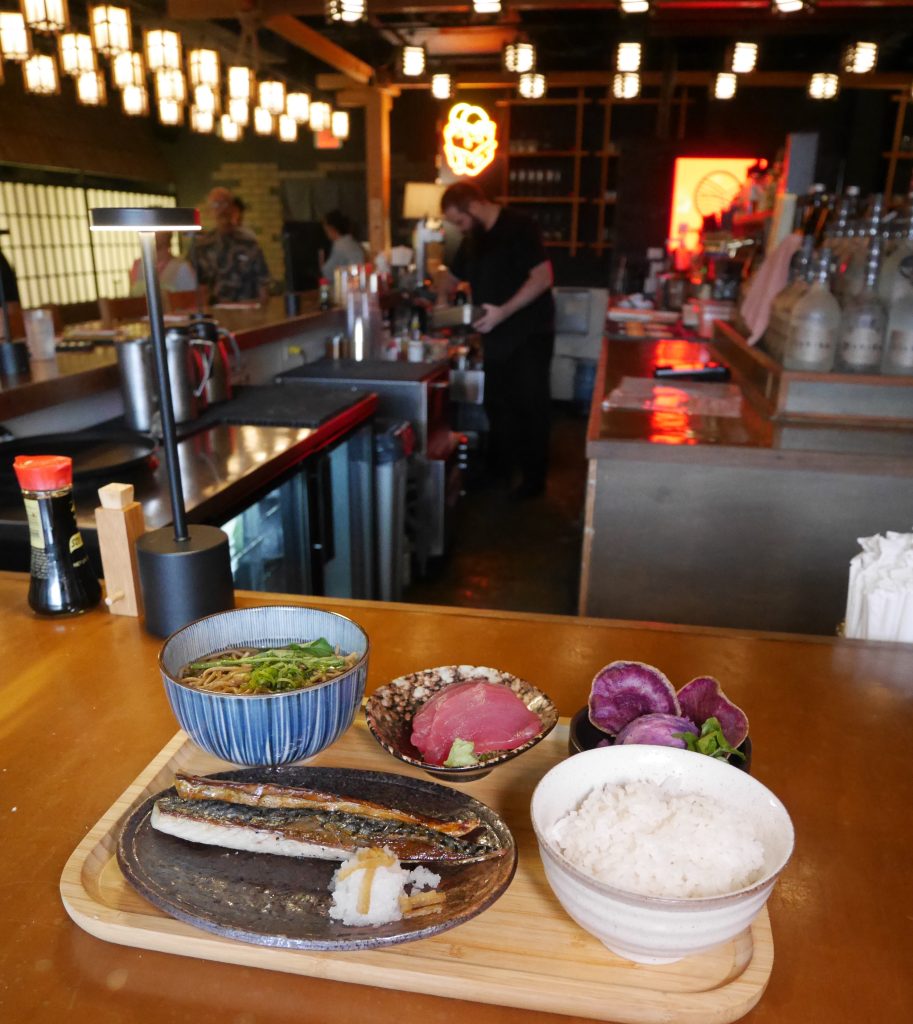 The Teishoku Lunch Set includes a choice of hot or cold soba, sashimi, rice, and either Washugyu Sukiyaki or Grilled Saba. The offering reflects Kaimuki Shokudo’s commitment to serving thoughtfully prepared dishes rooted in Japanese culinary tradition.